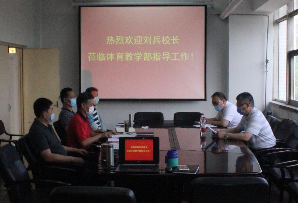 6月2日上午,校党委副书记、校长刘兵到yl6809永利集团调研。体育部全体领导班子成员、科级干部参加。郎振国主任代表班子就体育部的教学、科研、群体活动以及绩效工资改革方案的讨论情况等做了详尽的汇报,并提出了当前所面临的困难和问题。