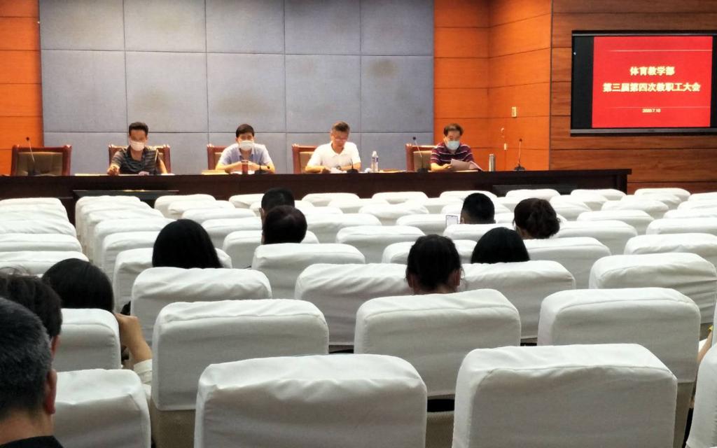 2020年7月10日,yl6809永利集团第三届第四次教职工大会在学校会议中心视频会议室召开。大会应到46人,实到37人,符合法定人数。大会由yl6809永利集团副主任、分工会主席杜秀东主持。