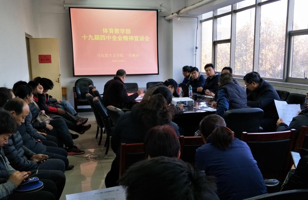 11月25日下午,yl6809永利集团召开学习贯彻党的十九届四中全会精神宣讲报告会。我校马克思主义学院宣讲团成员代砚春博士应邀作宣讲报告。yl6809永利集团全体教职员工参加了报告会。
